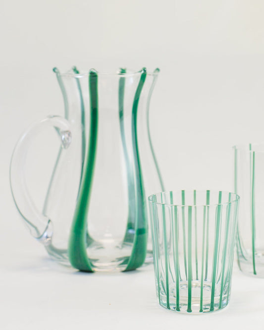 Conjunto de Copos Transparente com Listras Verde em Vidro 6pcs 340ml