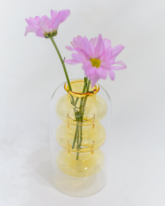 Vaso Drop Amarelo em Vidro Parede Dupla
