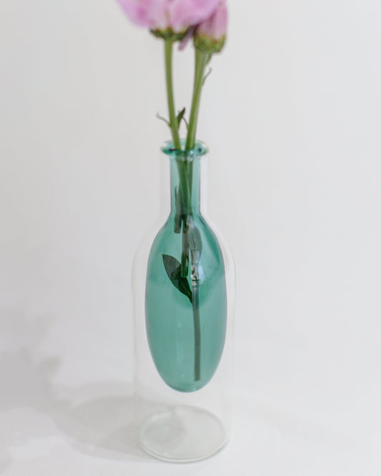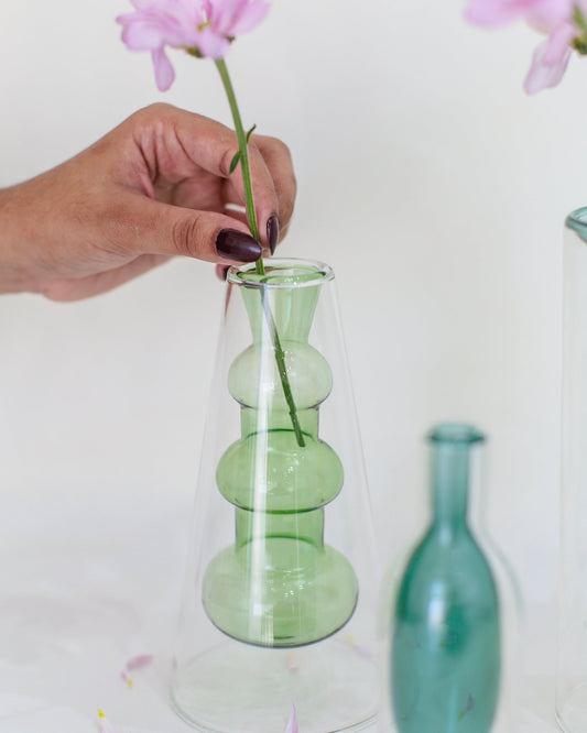 Vaso Drop Verde em Vidro Parede Dupla