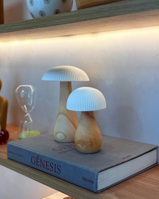 Luminária Cogumelo G em Madeira e Cerâmica