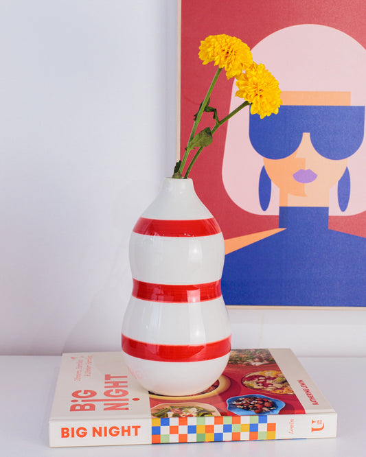 Garrafa Lido Faixas Vermelha em Cerâmica