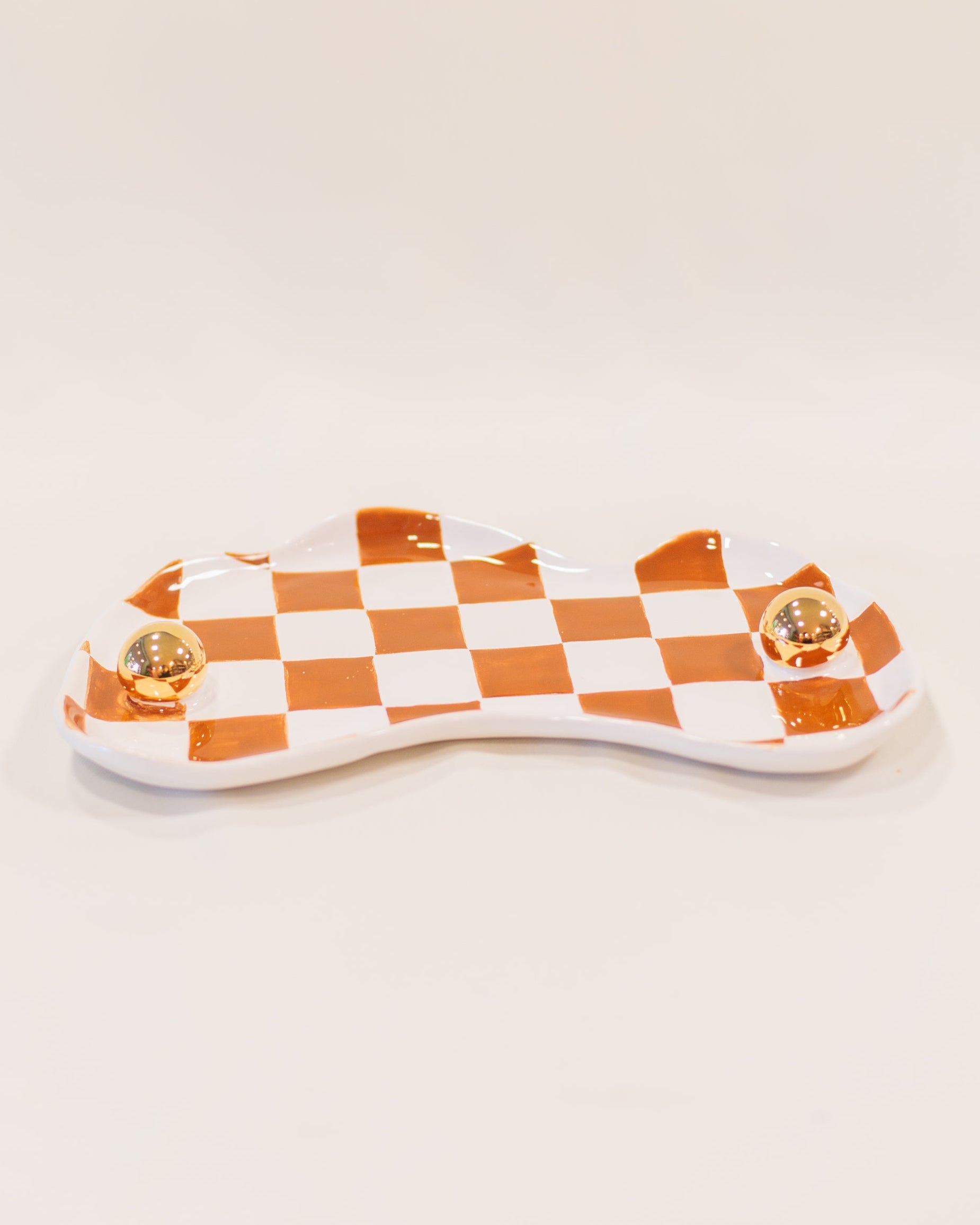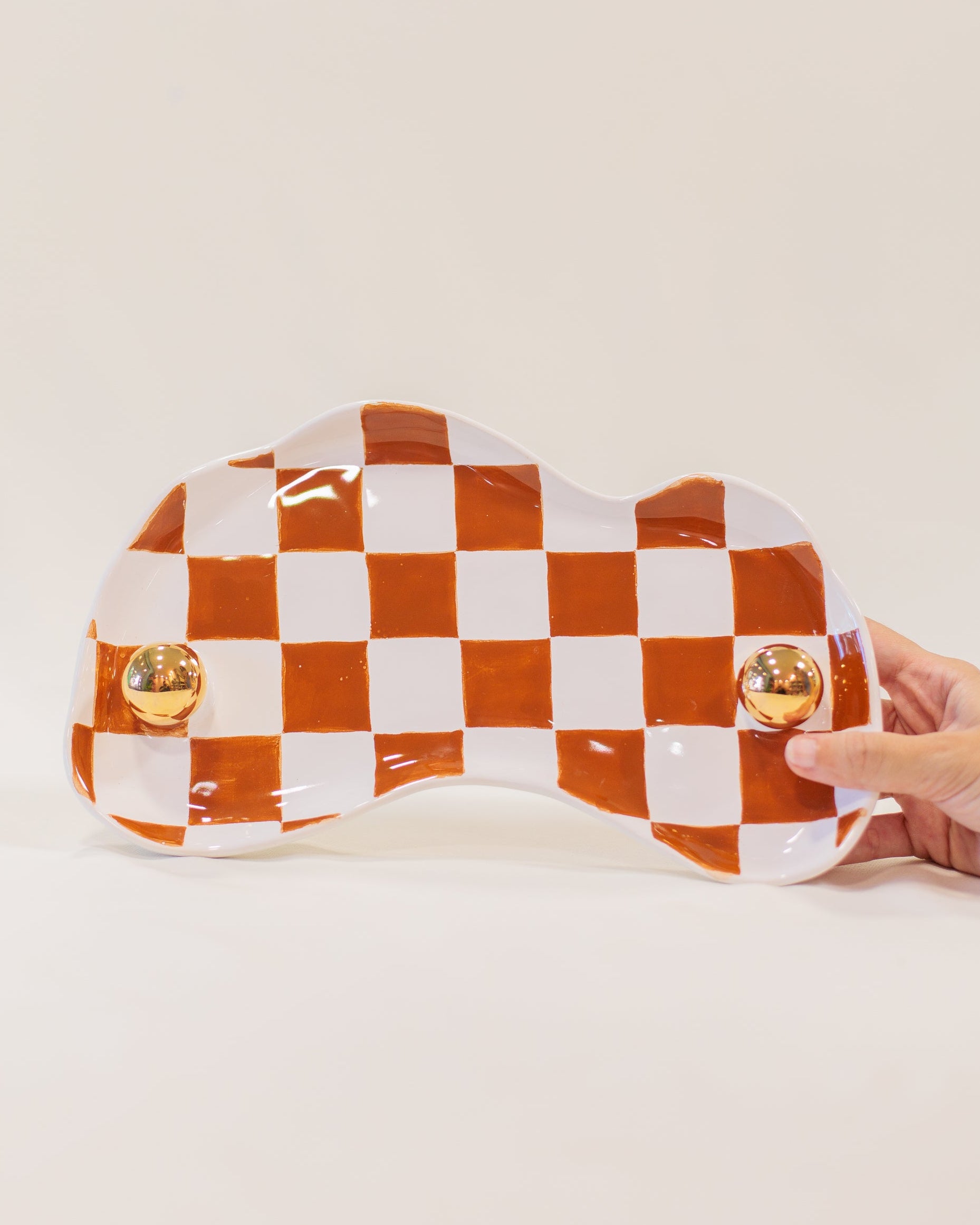 Bandeja Orgânica Xadrez Ocre em Cerâmica