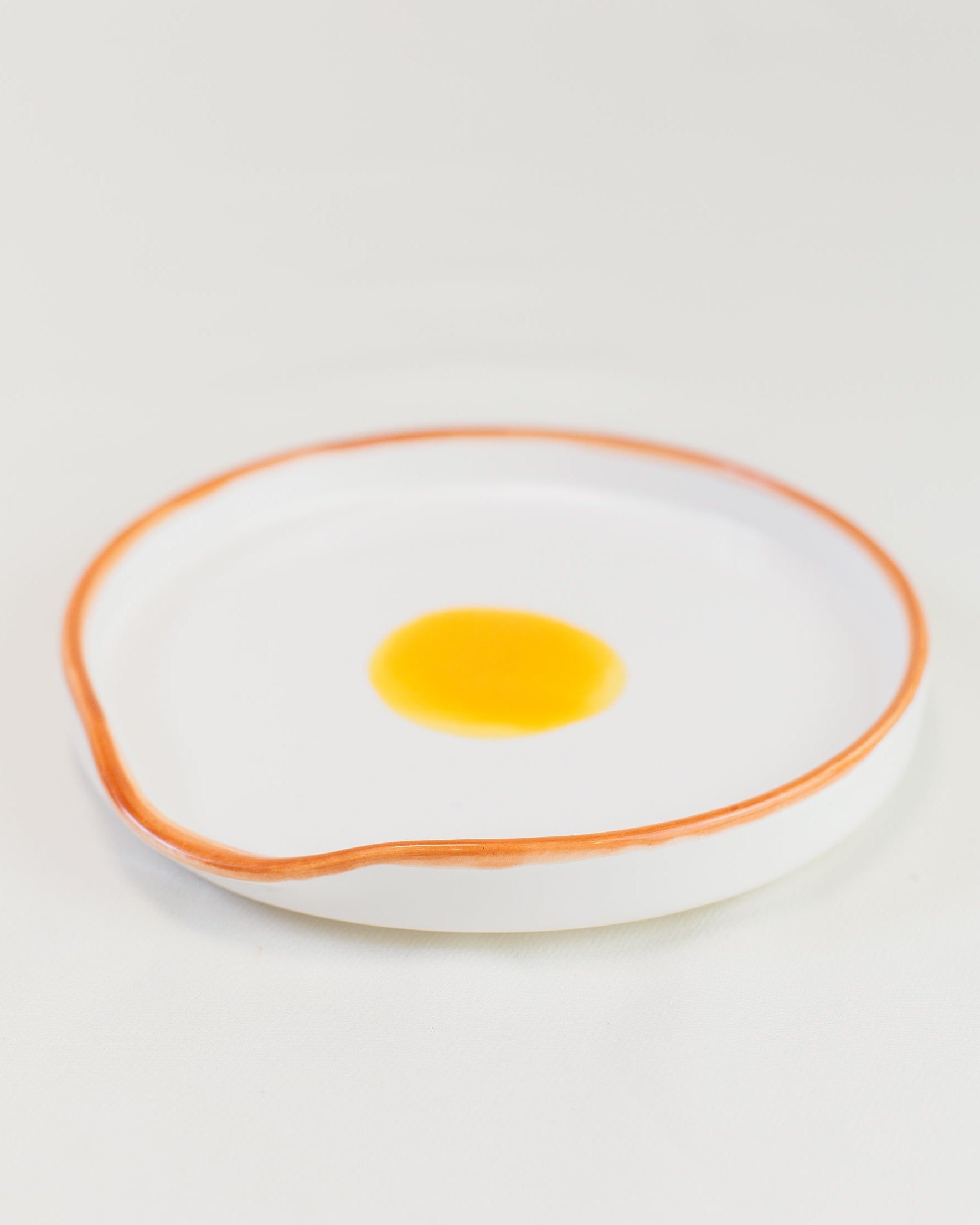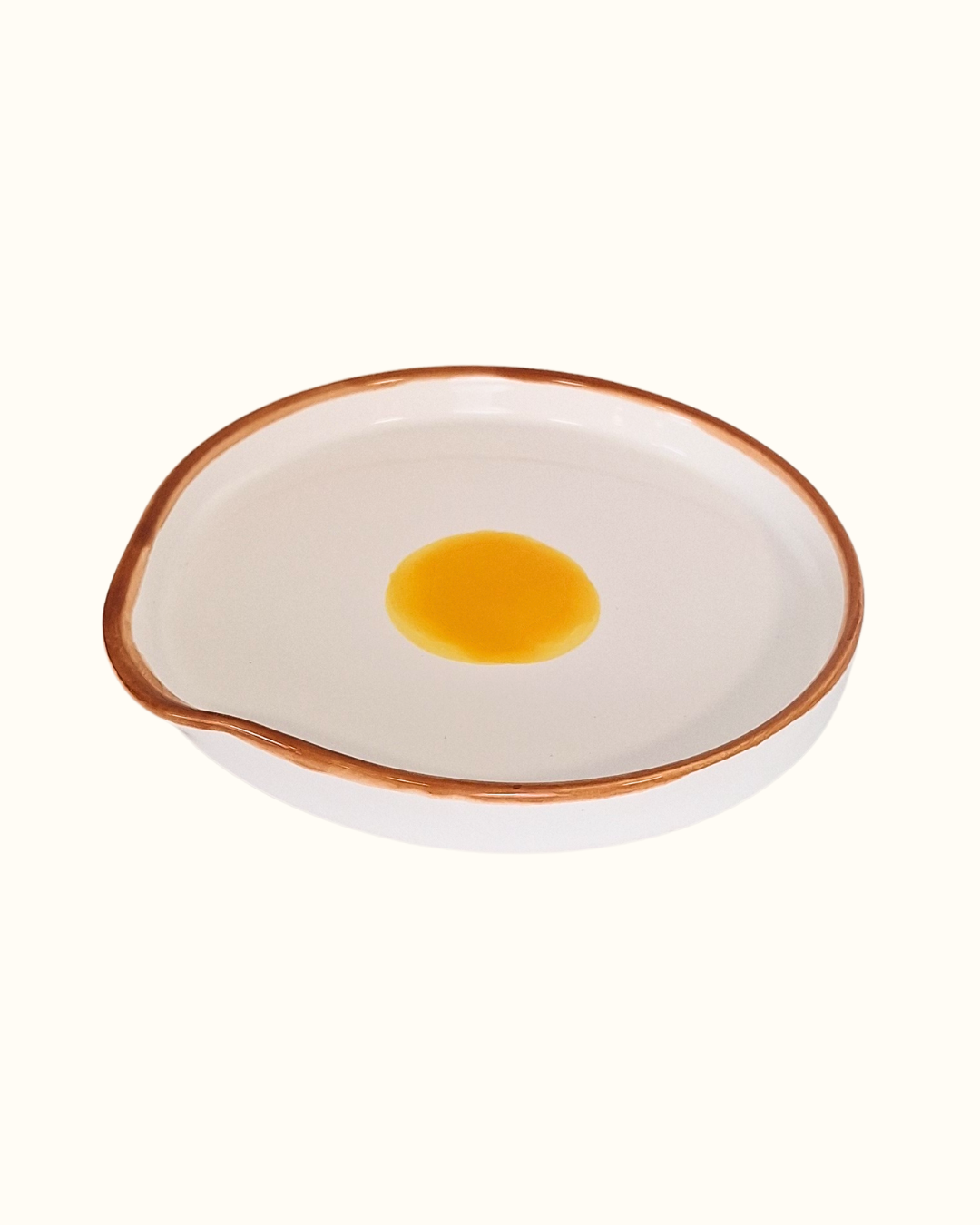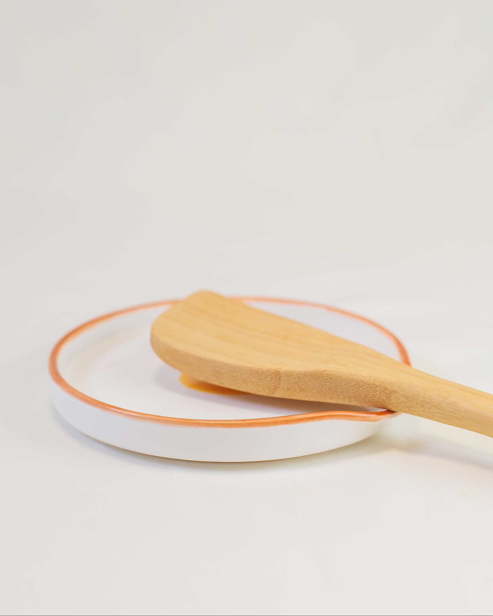 Descanso para talher em formato de ovo, feito em cerâmica pintada à mão