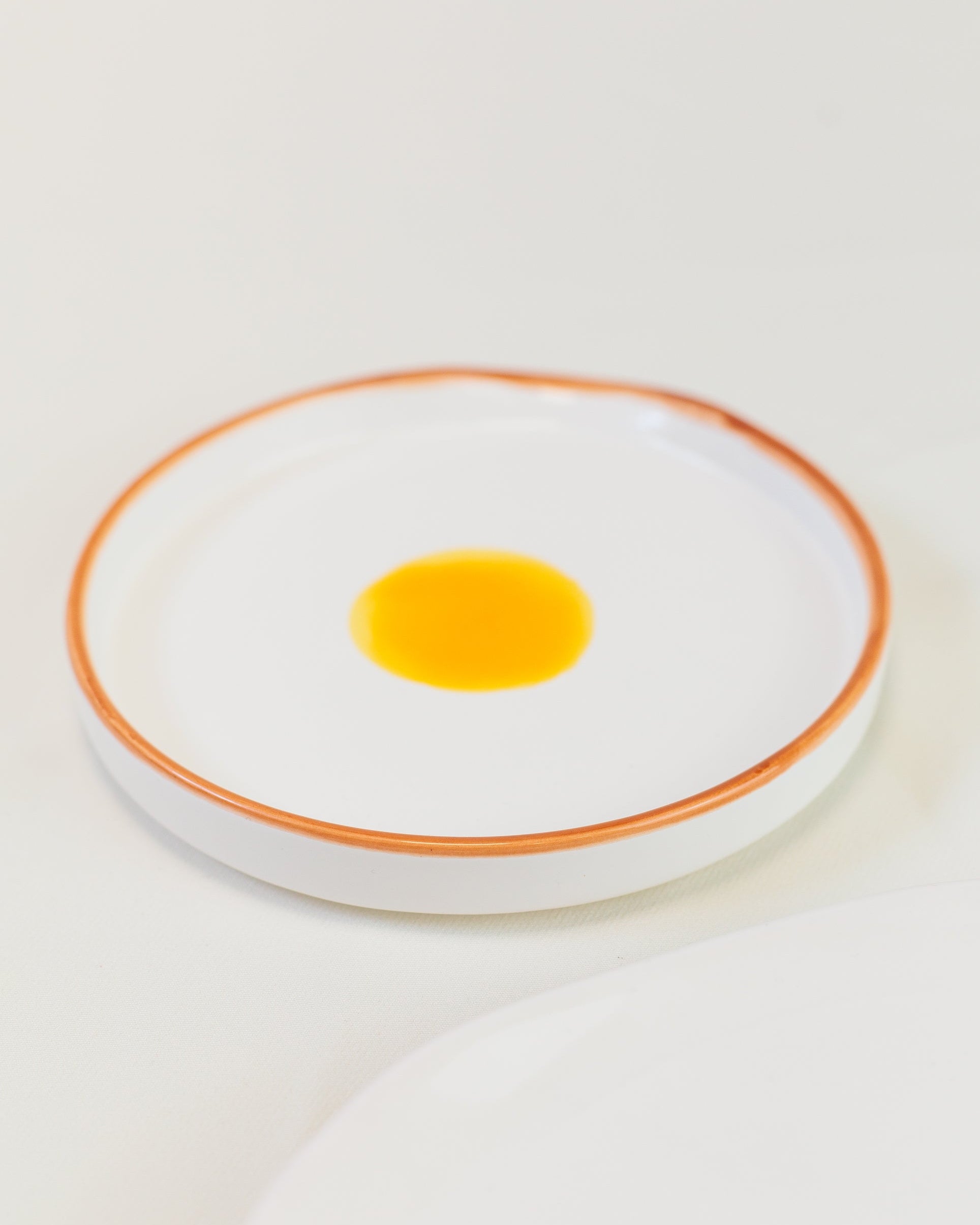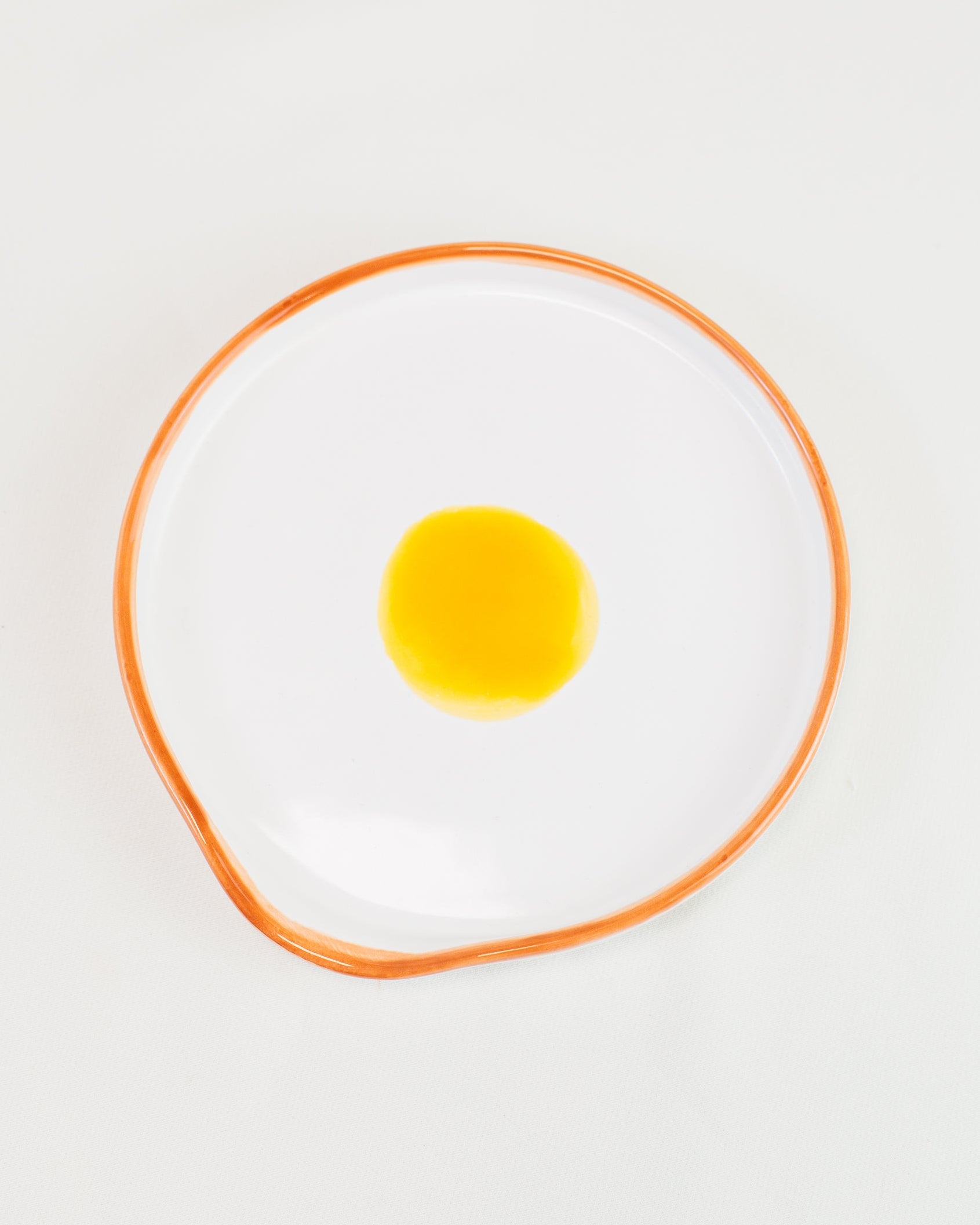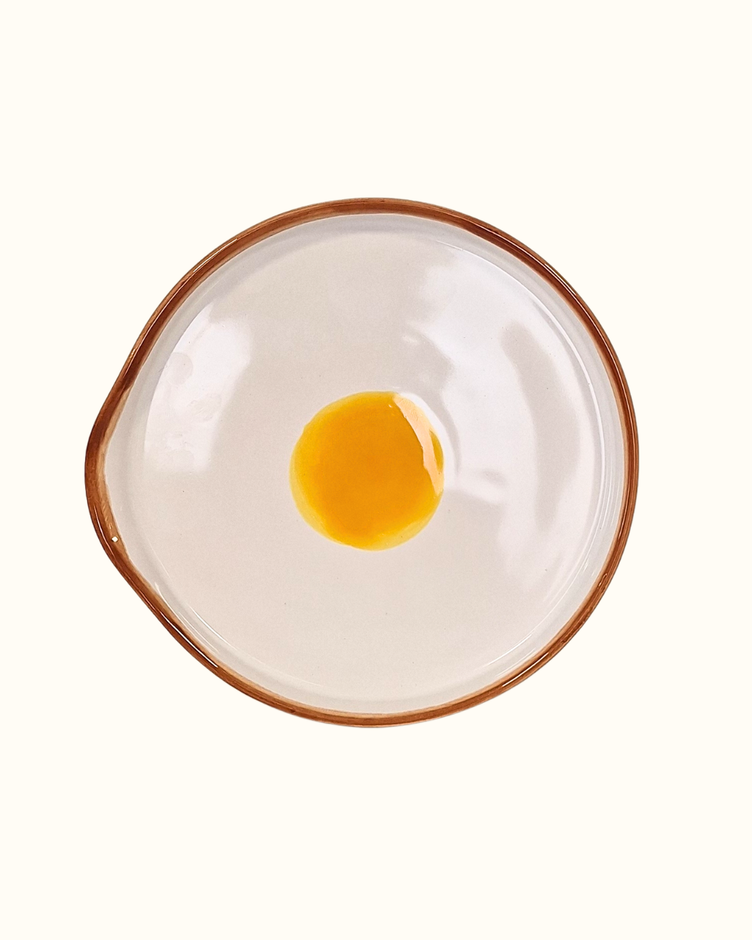 Descanso para talher em formato de ovo, feito em cerâmica pintada à mão
