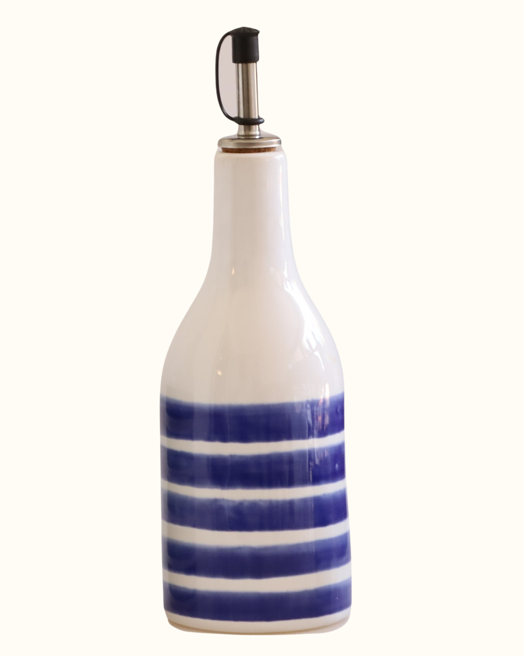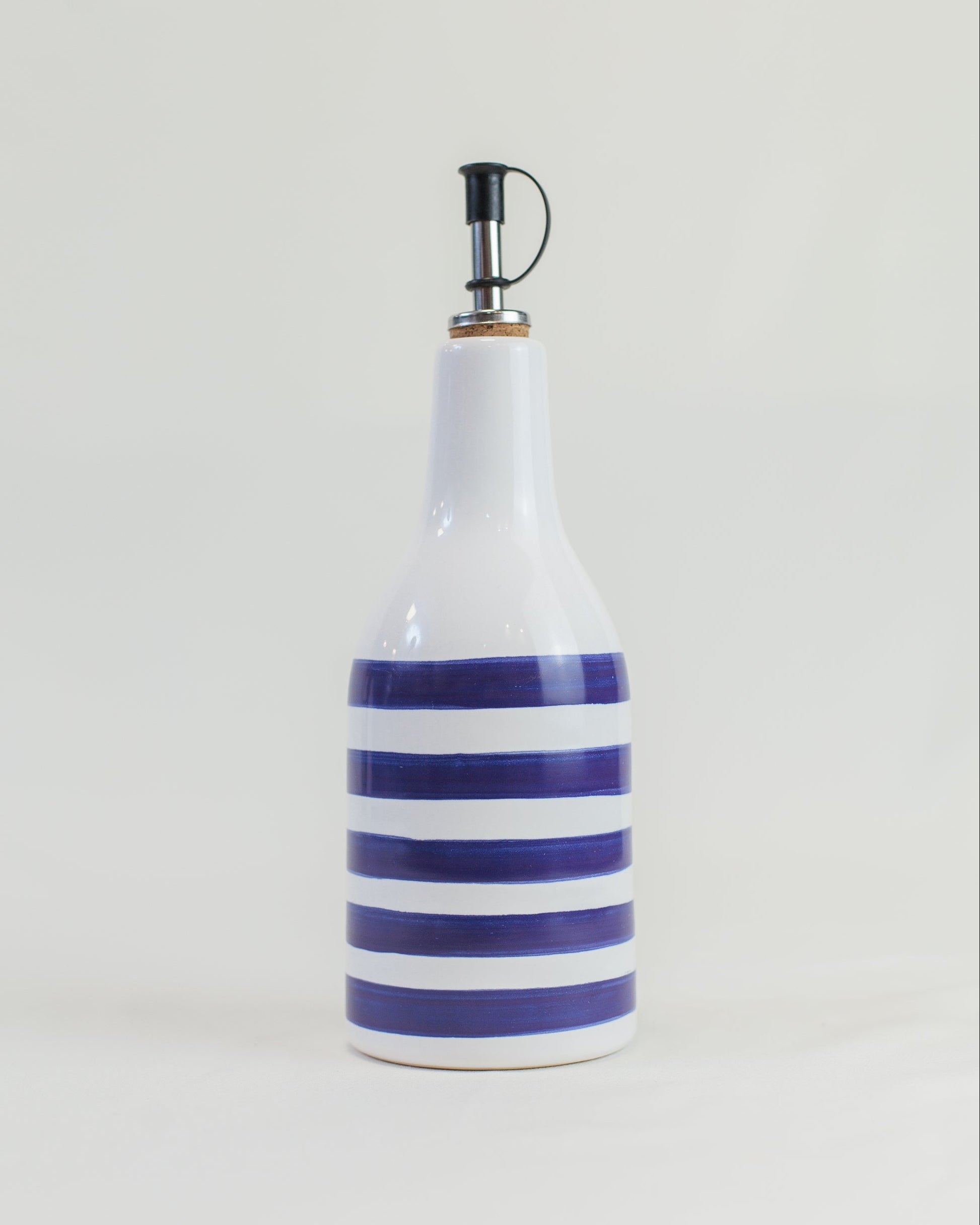 Garrafa em cerâmica com bico, com listras pintadas à mão, ideal para azeite, vinagre ou molhos