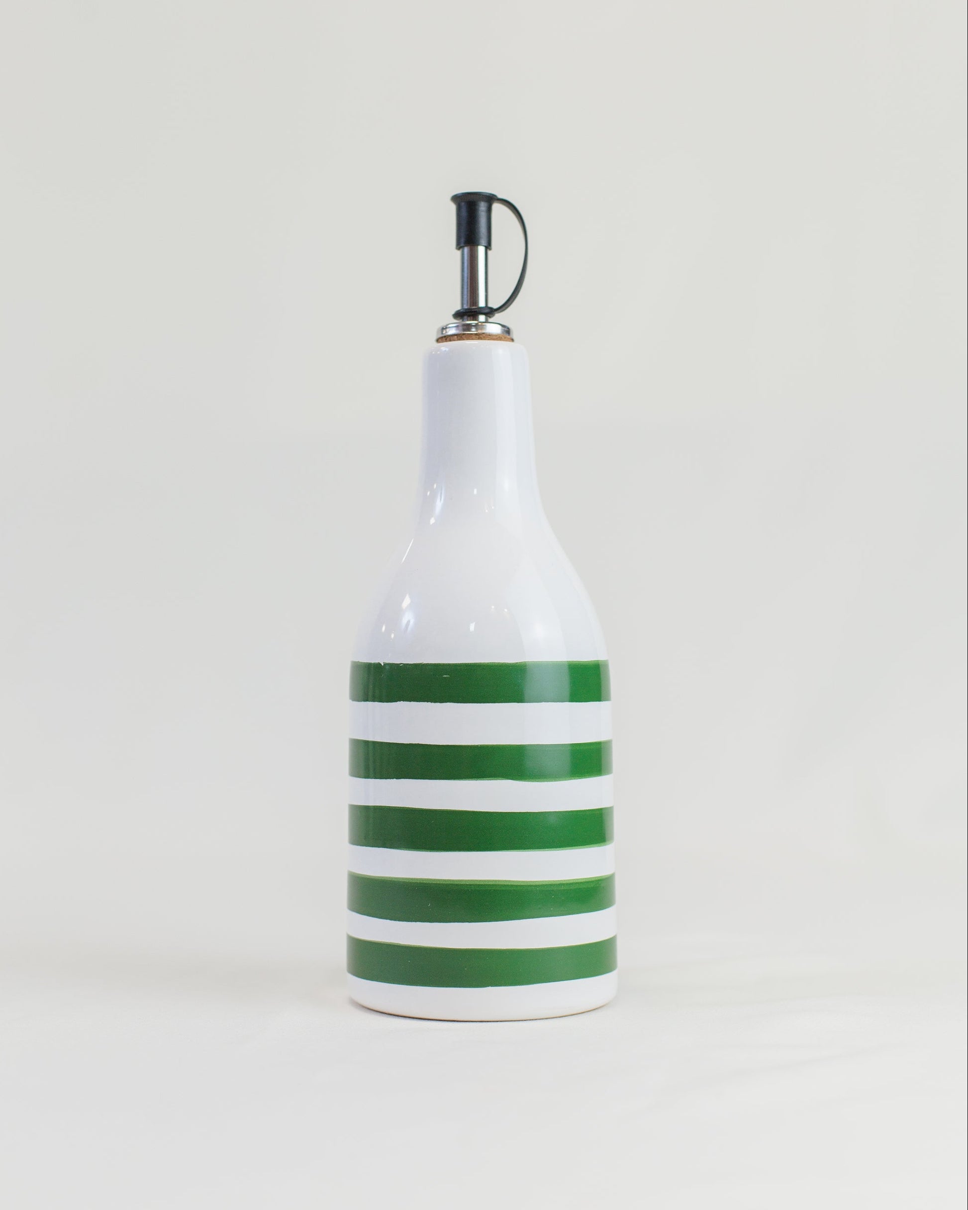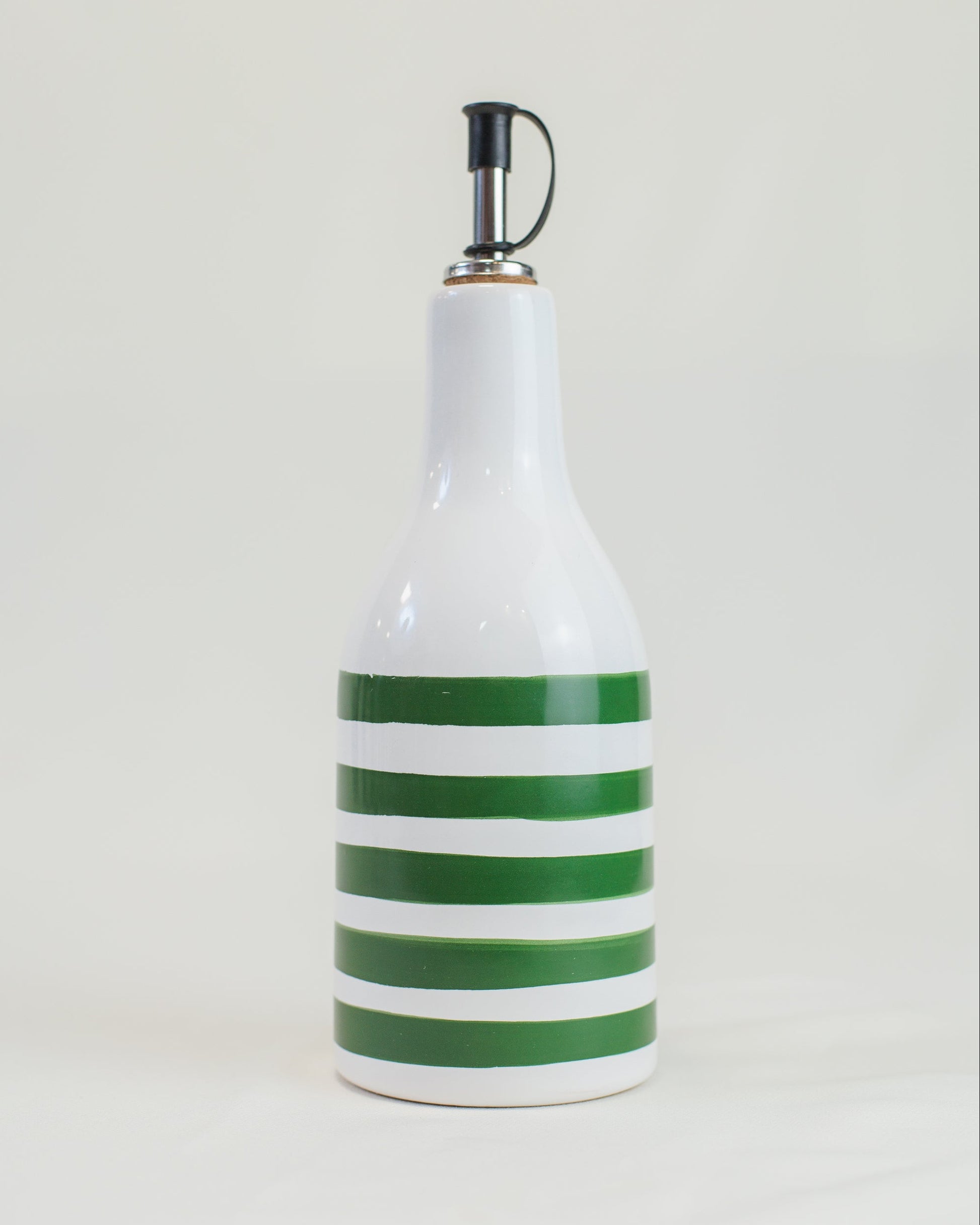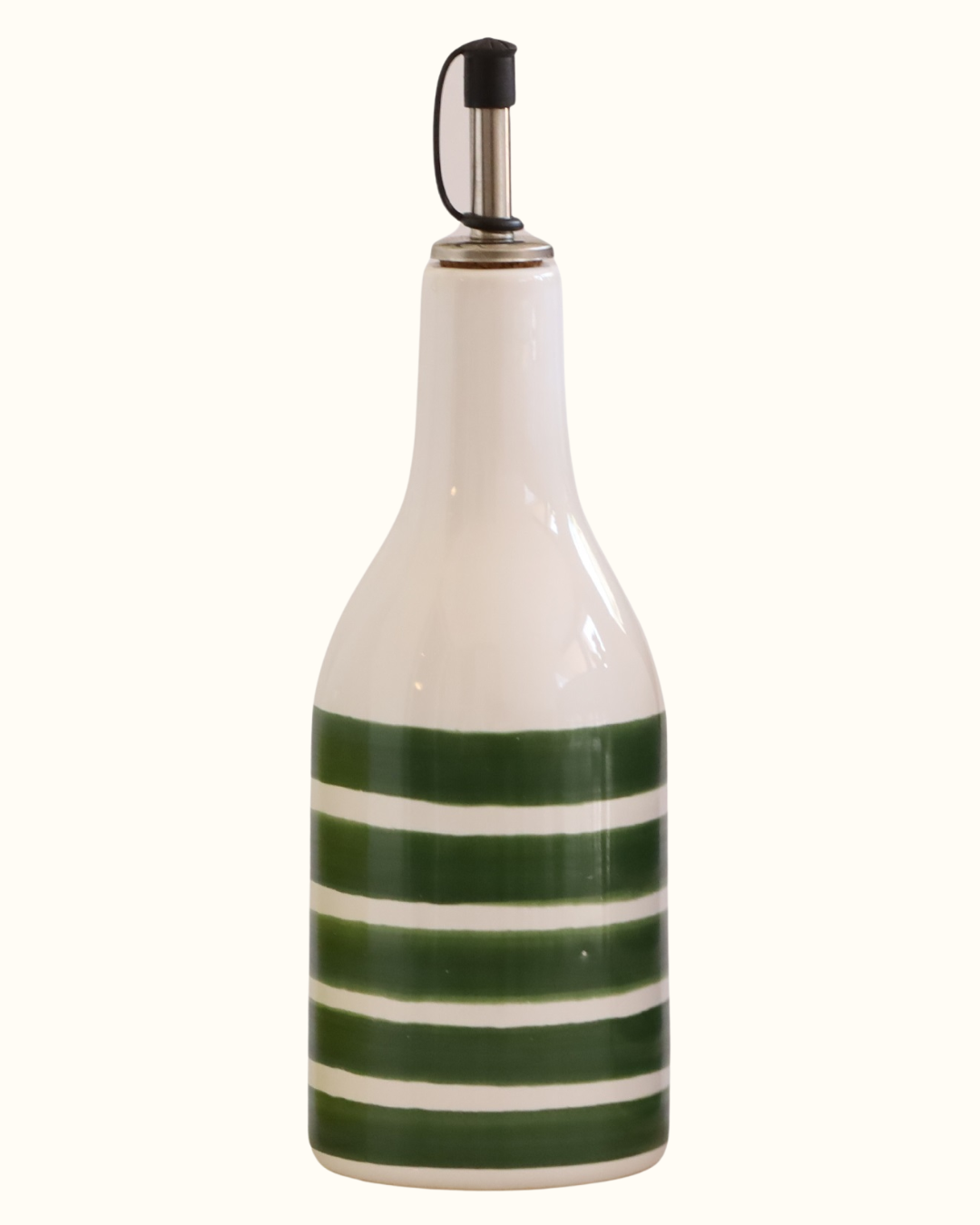Garrafa em cerâmica com bico, com listras pintadas à mão, ideal para azeite, vinagre ou molhos