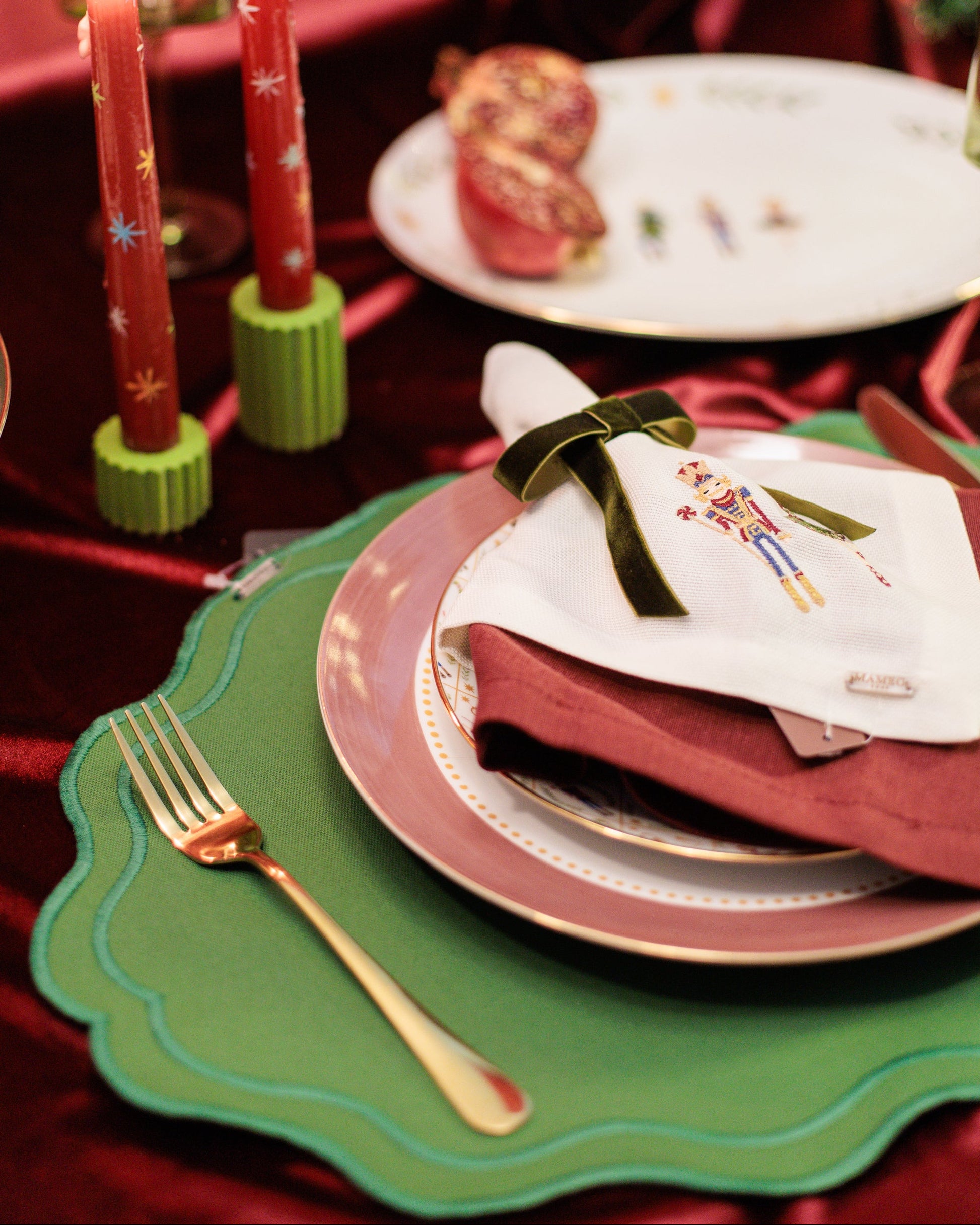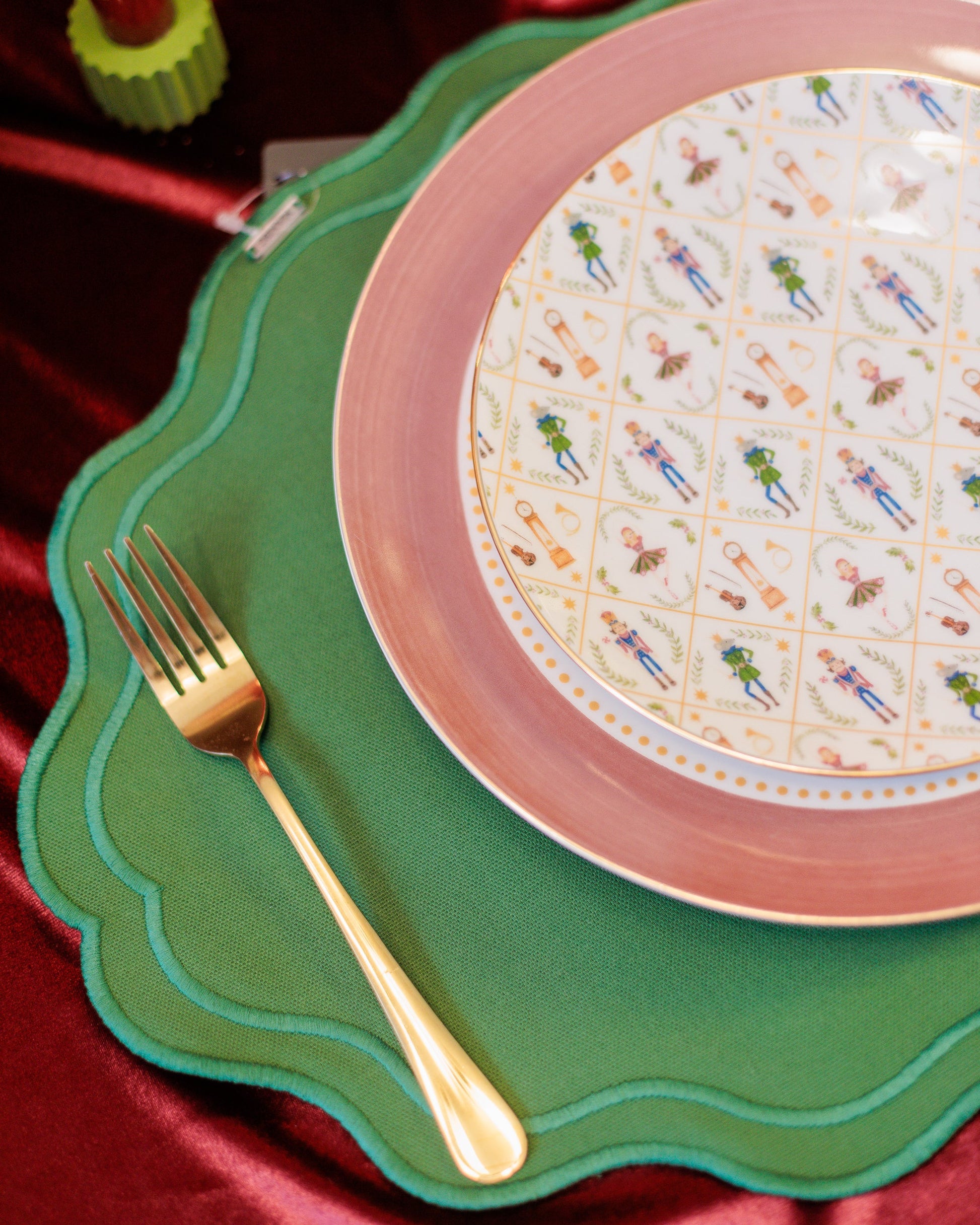 Lugar Americano de formato orgânico com bordado duplo em toda peça. Tecido de algodão com acabamento engomado.