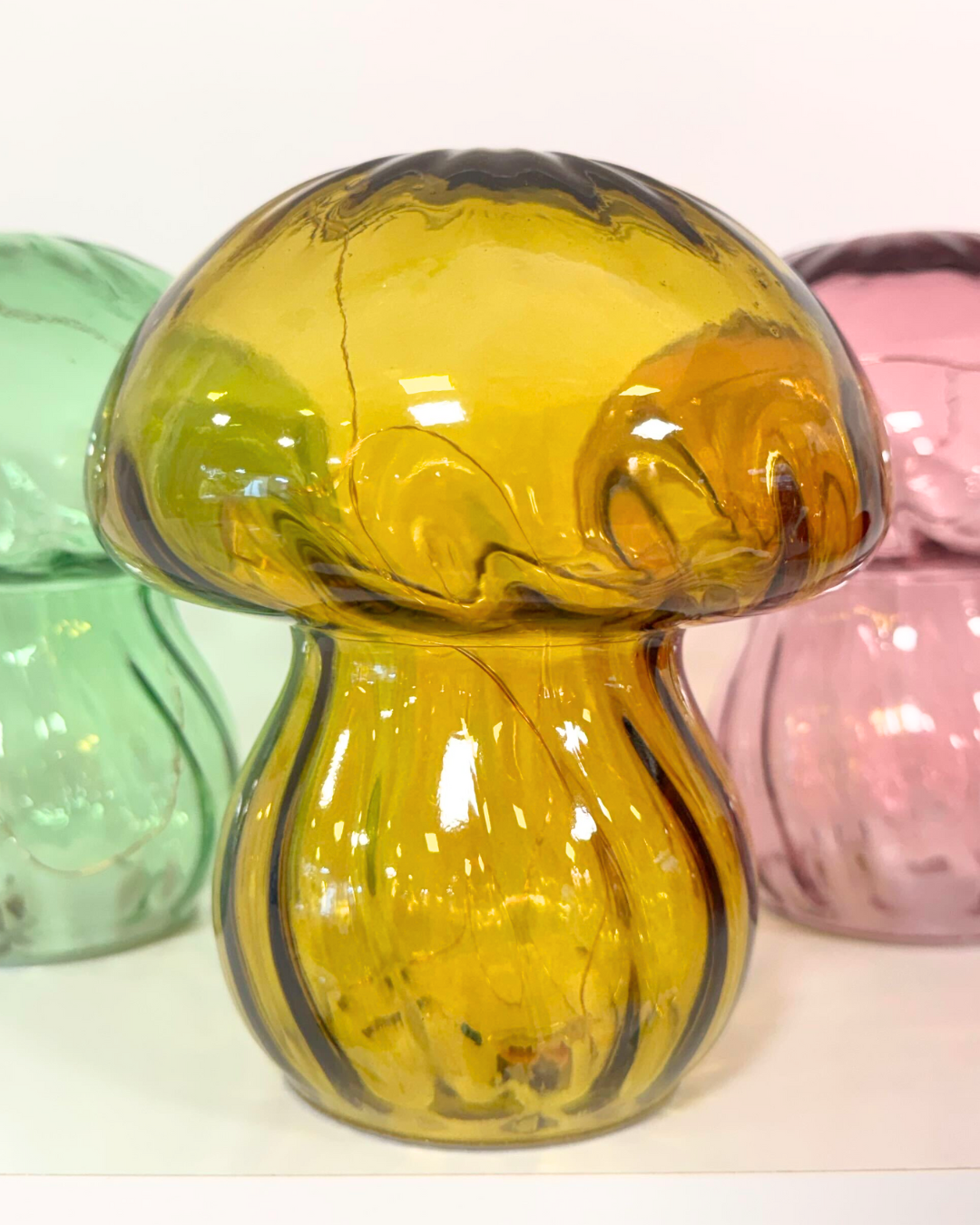 A Mush Magic é a luminária que transforma qualquer cantinho num universo encantado 💫. Feita de vidro colorido com acabamento translúcido, ela combina um design retrô-fantástico com a energia divertida que só a Liló tem! Funciona com LED a pilha (nada de fio! 🙌), perfeita pra dar aquele toque glow em estantes, mesas ou cabeceiras.