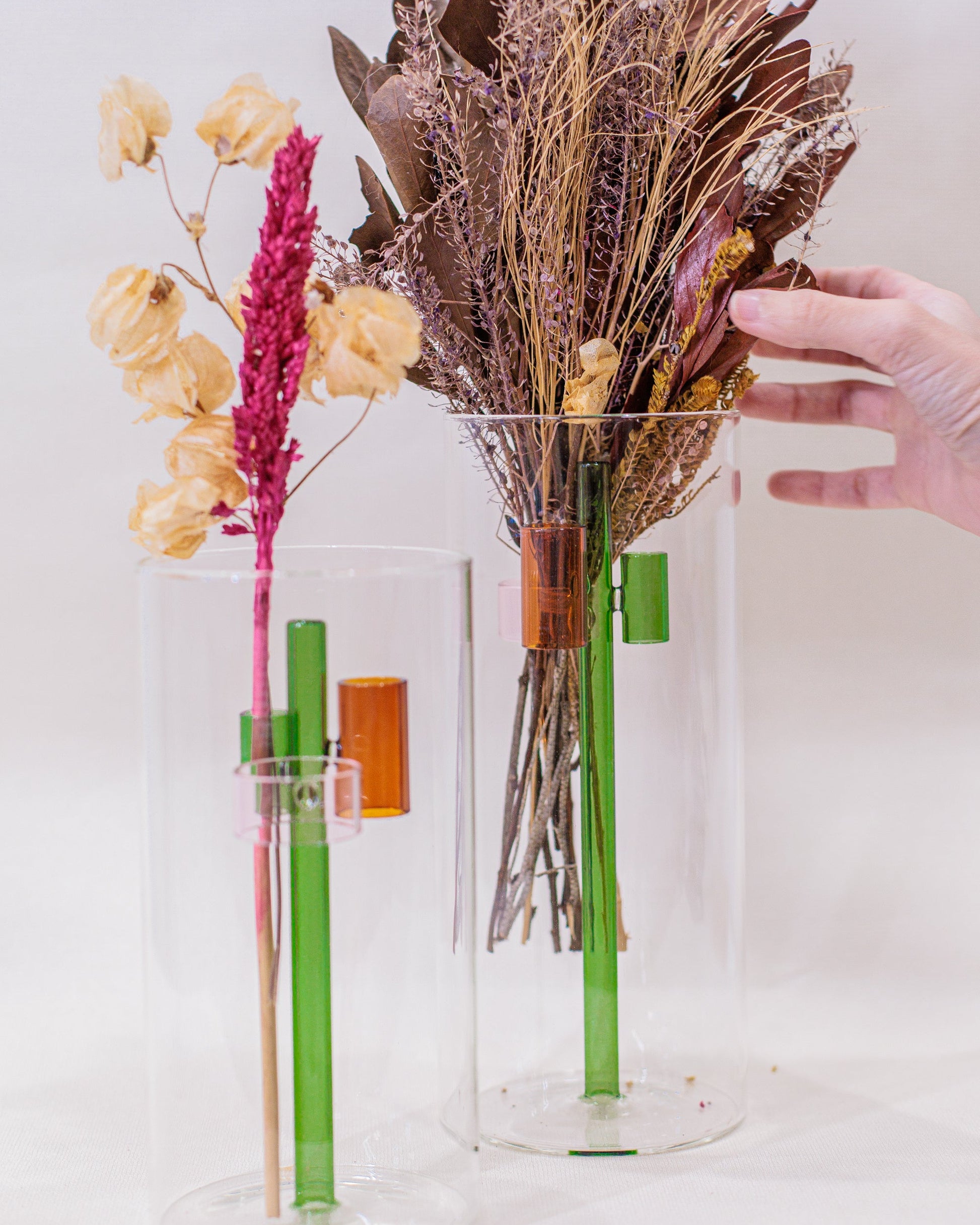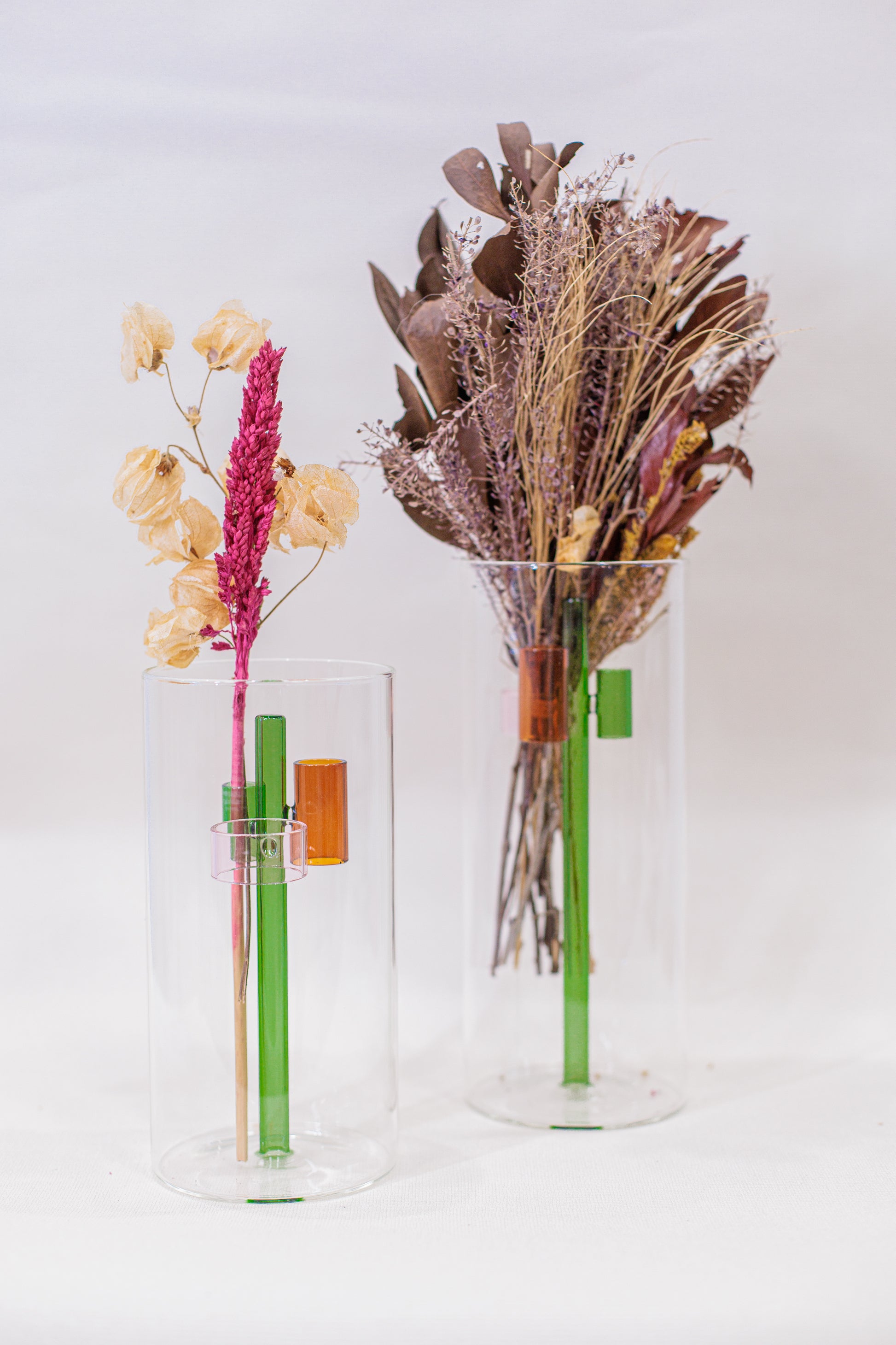 Cada peça traz um suporte interno colorido que sustenta os caules e facilita a montagem de arranjos, deixando suas flores sempre no lugar certo e a decor cheia de charme.